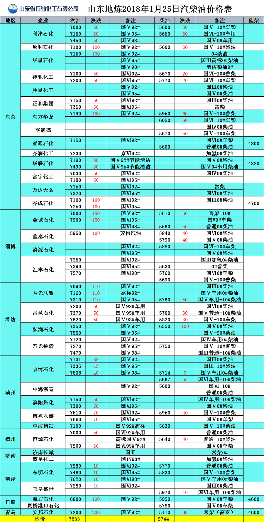 山東地?zé)?017年1月25日汽柴油價(jià)格表