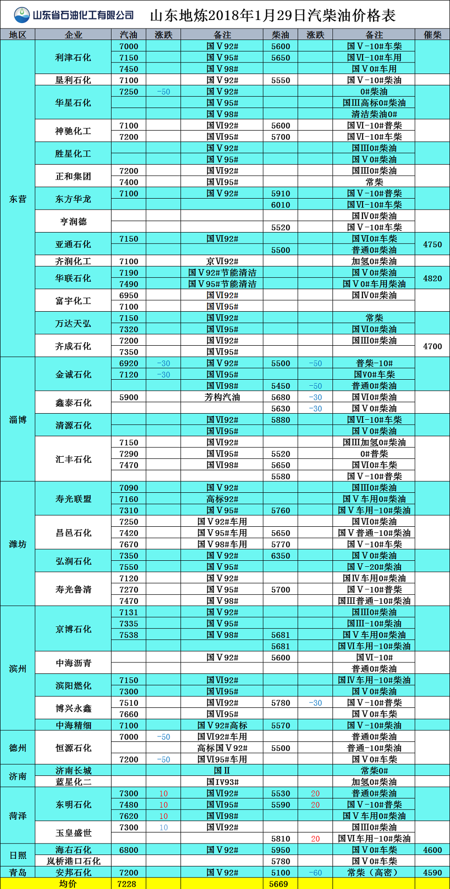 山東地?zé)?017年1月29日汽柴油價格表