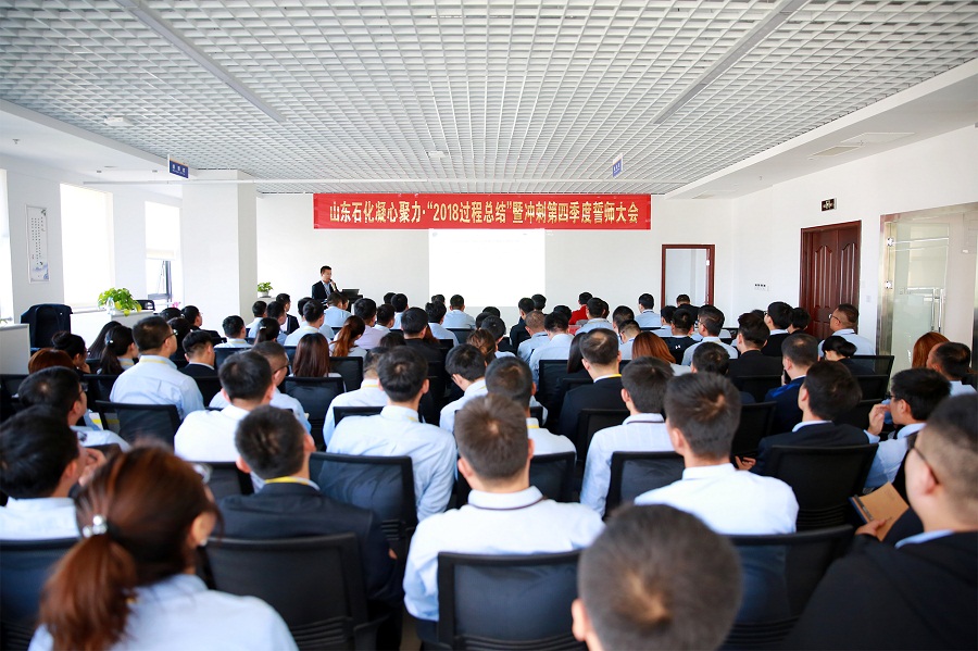 10月10日,山東石化凝心聚力?“2018過(guò)程總結(jié)”暨沖刺第四季度誓師大會(huì)在濟(jì)南隆重召開(kāi)。