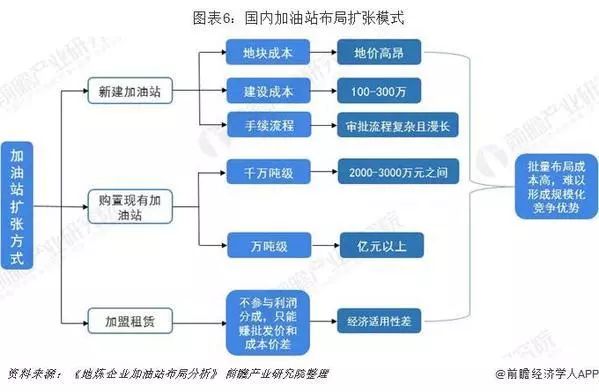 雖然各路資本加注中國(guó)成品油市場(chǎng),但中國(guó)石化和中國(guó)石油通過(guò)煉銷一體化,基于銷售領(lǐng)域的優(yōu)勢(shì)帶來(lái)的戰(zhàn)略優(yōu)勢(shì),在未來(lái)的競(jìng)爭(zhēng)中仍舊占據(jù)有利地形。由于國(guó)內(nèi)成品油供給過(guò)剩越來(lái)越嚴(yán)重,主營(yíng)企業(yè)和地方企業(yè)在成品油銷售渠道上的競(jìng)爭(zhēng)也越來(lái)越激烈。然而,地方煉廠主要以直銷、分銷和批發(fā)作為其成品油銷售的主要模式,在終端加油站渠道上的布局十分單薄,主要原因在于,由于新建加油站或購(gòu)置現(xiàn)成加油站的成本高昂,地方煉廠難以大量增加其加油站的數(shù)量。加油站建設(shè)的高成本,成為地?zé)捚髽I(yè)在成品油銷售終端布局上面臨的巨大難題,也使得中石油中石化在成品油零售端上的優(yōu)勢(shì)長(zhǎng)期存在。