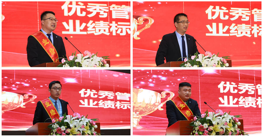 隨后,優(yōu)秀業(yè)績標兵王新、姜青林、陳光偉,優(yōu)秀管理者邵金光,為大家分享了在各自業(yè)務(wù)及管理領(lǐng)域的心得。
