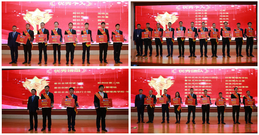經(jīng)營管理商學(xué)院院長邵金光宣讀2019年度表彰決定。2019年共評出19個獎項,其中優(yōu)秀團隊獎8項、優(yōu)秀班組3項、優(yōu)秀個人獎7項,共有9個團隊小組及17名員工憑借突出貢獻、驕人業(yè)績以及優(yōu)異工作表現(xiàn)獲得獎項,相關(guān)領(lǐng)導(dǎo)予以頒獎。