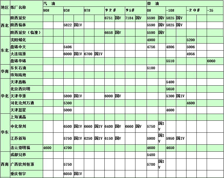 國(guó)內(nèi)煉廠2015年2月11日汽柴油價(jià)格表