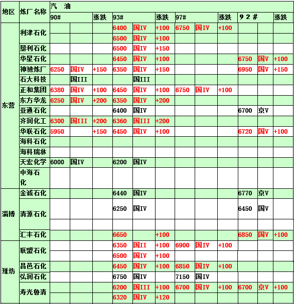 2015年2月26日山東地煉汽油價格