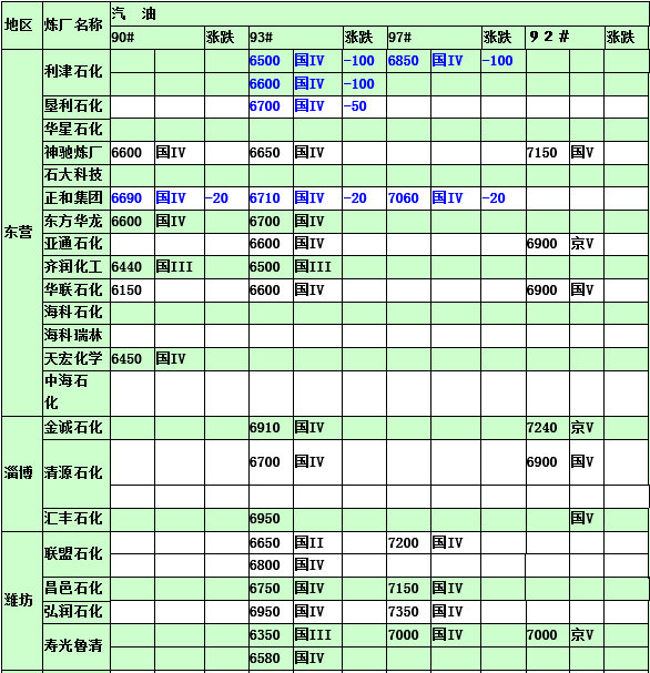 國內(nèi)煉廠2015年3月5日汽柴油價格表