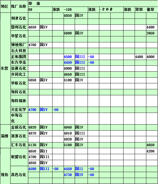 國內(nèi)煉廠2015年3月17日汽柴油價格表