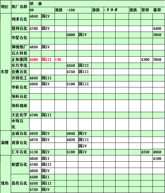 2015年3月23日山東地煉柴油價格