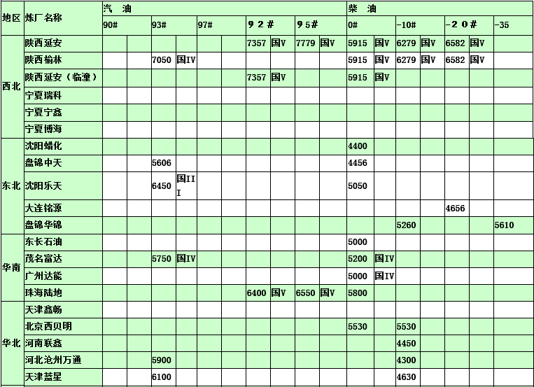 國(guó)內(nèi)煉廠2015年4月2日汽柴油價(jià)格表