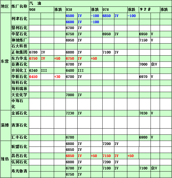 2015年4月23日山東地煉汽油價格