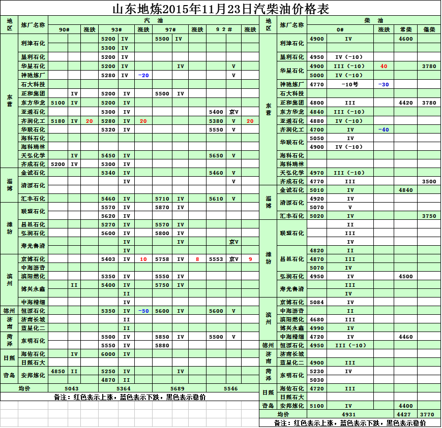 2015年11月23日山東地?zé)捚裼蛢r格表