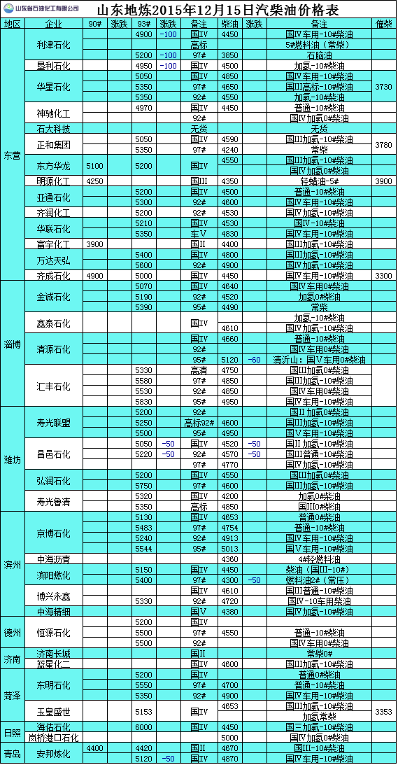 2015年12月15日山東地?zé)捚裼蛢r(jià)格表