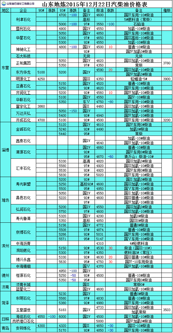 2015年12月22日山東地?zé)捚裼蛢r(jià)格表