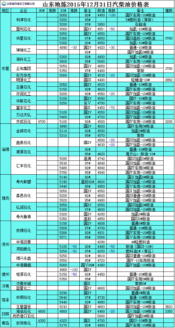 2015年12月31日山東地?zé)捚裼蛢r(jià)格表