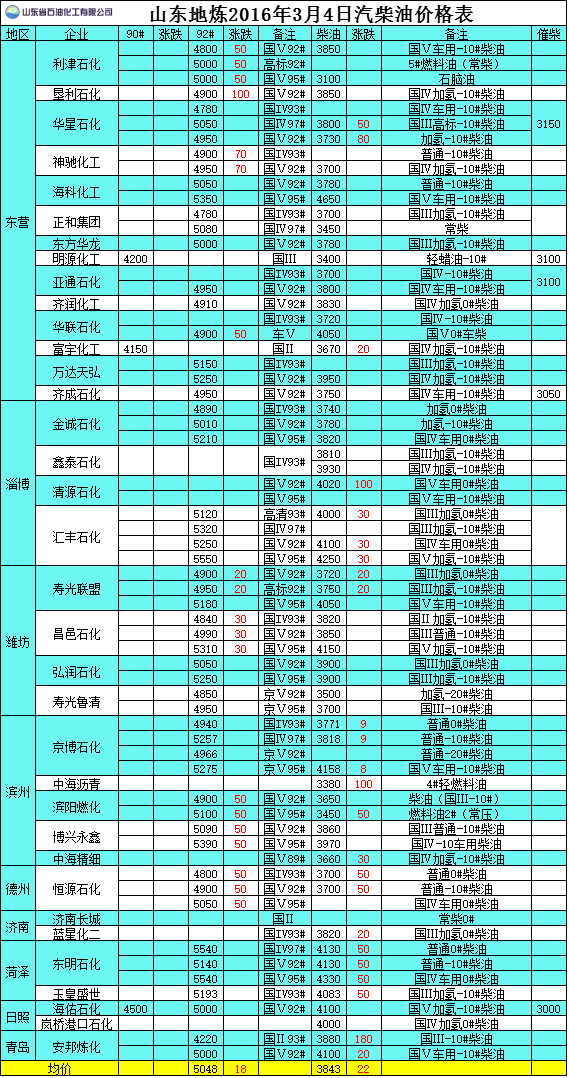 2016年3月3日山東地?zé)捚裼蛢r(jià)格表