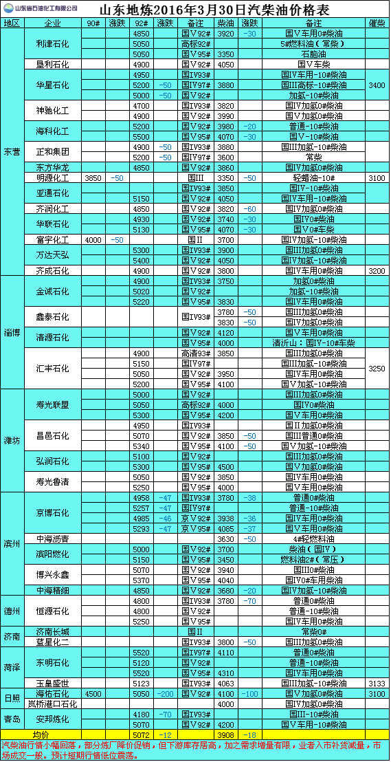 2016年3月29日山東地?zé)捚裼蛢r格表