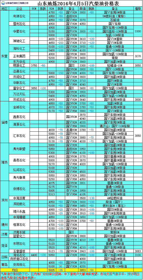 2016年4月5日山東地?zé)捚裼蛢r(jià)格表