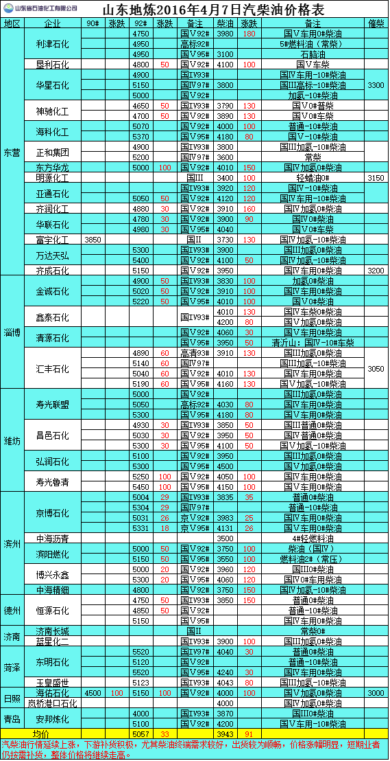 2016年4月7日山東地?zé)捚裼蛢r(jià)格表