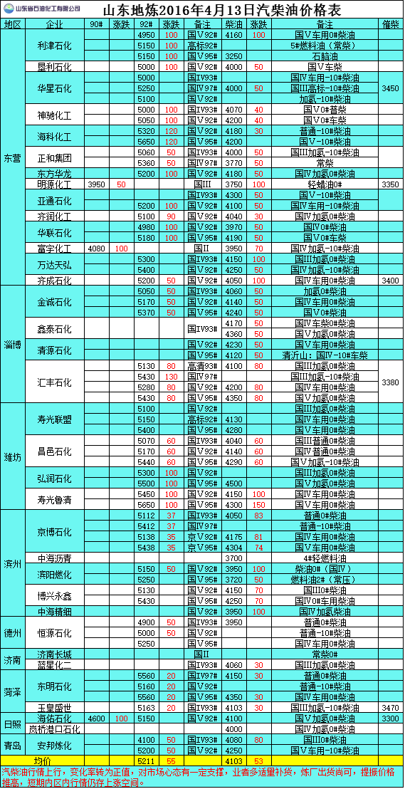 2016年4月13日山東地?zé)捚裼蛢r(jià)格表