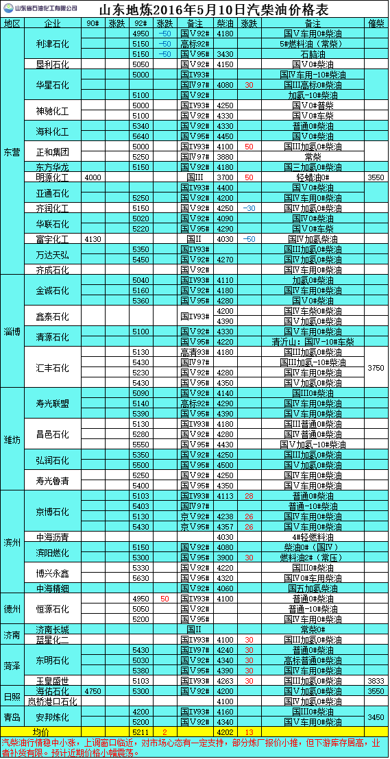 2016年5月10日山東地?zé)捚裼蛢r格表