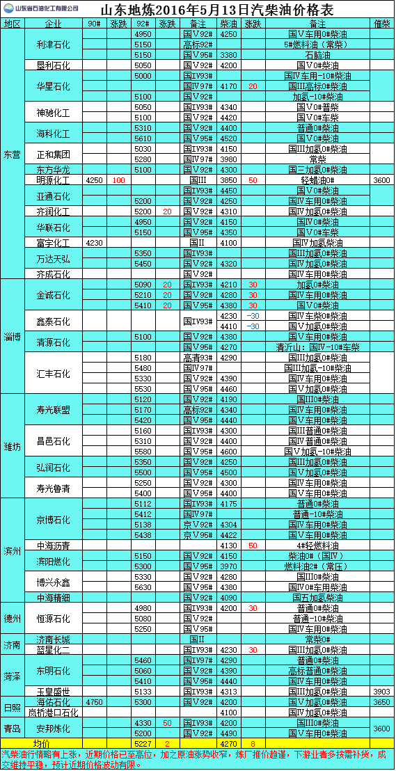 2016年5月13日山東地?zé)捚裼蛢r(jià)格表