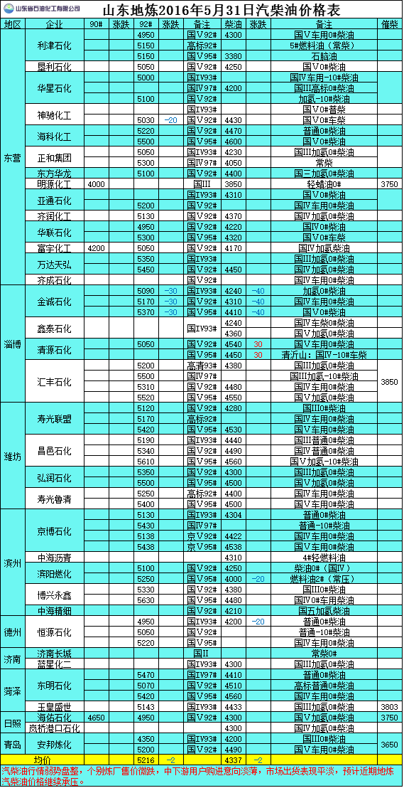 2016年5月31日山東地?zé)捚裼蛢r(jià)格表