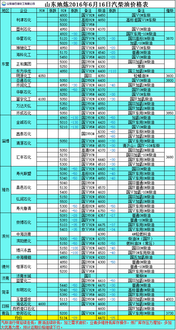2016年6月16日山東地?zé)捚裼蛢r(jià)格表