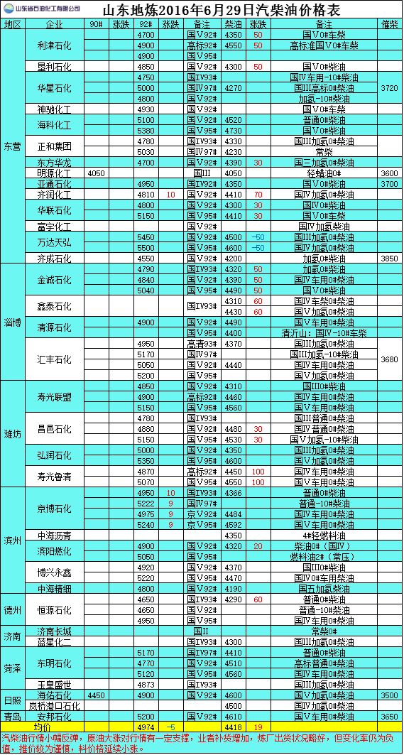 6月30日山東地煉汽柴油價格