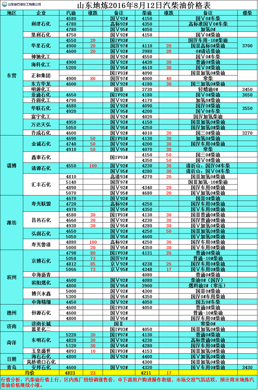 行情分析:汽柴油行情上行,區(qū)內(nèi)煉廠紛紛調(diào)漲售價,中下游用戶購進(jìn)操作積極,市場交投氣氛活躍,預(yù)計(jì)周末地?zé)捚裼蛢r格繼續(xù)小漲。