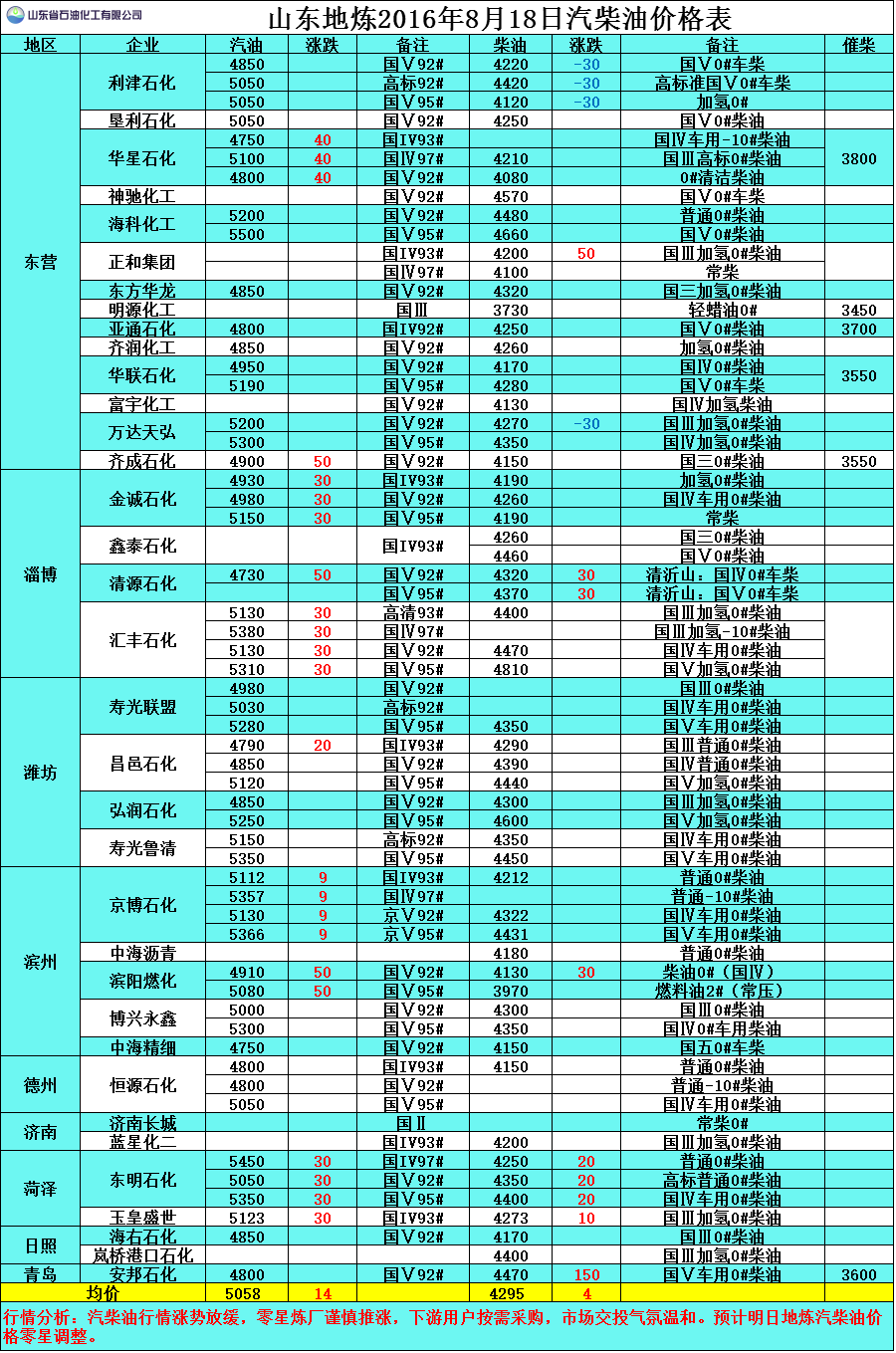 行情分析:汽柴油行情漲勢放緩,零星煉廠謹慎推漲,下游用戶按需采購,市場交投氣氛溫和。預(yù)計明日地煉汽柴油價格零星調(diào)整。
