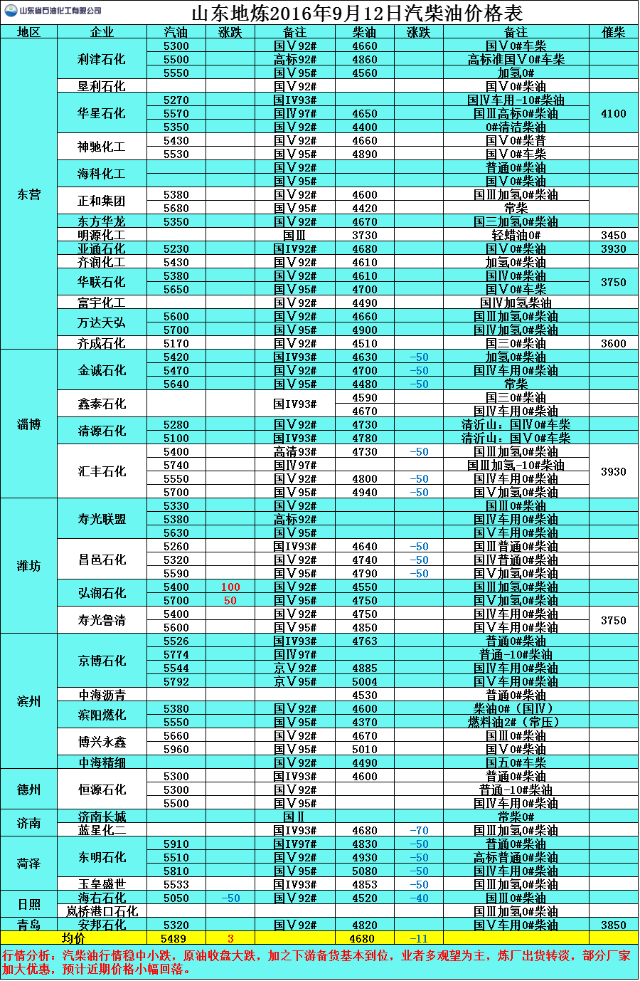 9月12日山東地煉汽柴油價格