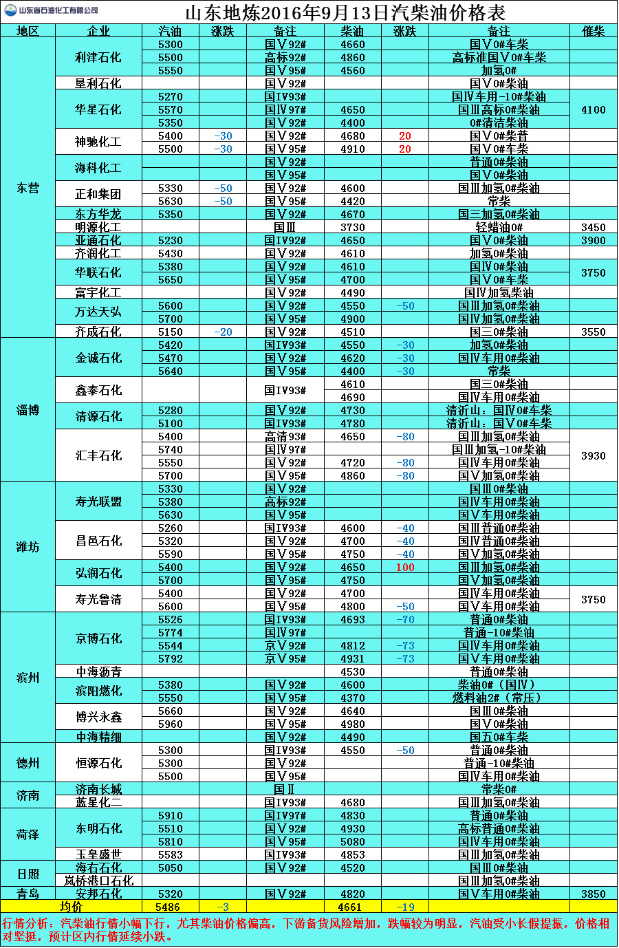 9月13日山東地煉汽柴油價格