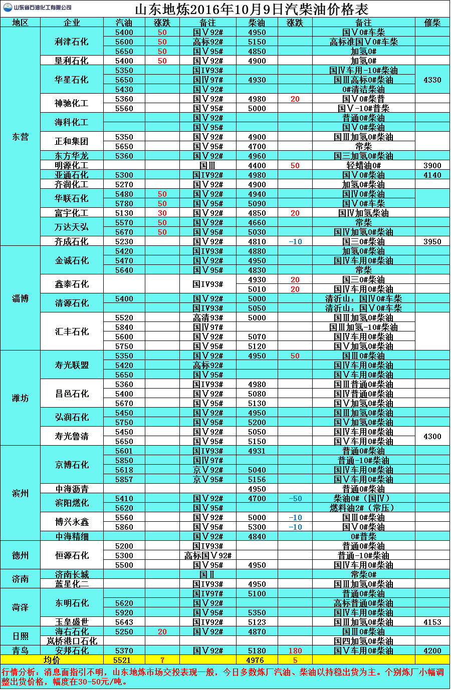 10月9日山東地煉汽柴油價格