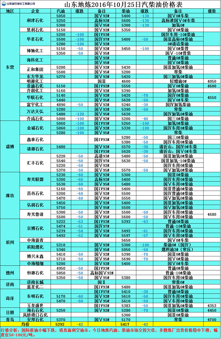 行情分析:國際原油小幅下跌,消息面利空油市。今日地?zé)捚?、柴油市場交投欠佳,多?shù)煉廠出貨價格穩(wěn)中下滑,幅度在50-100元/噸。