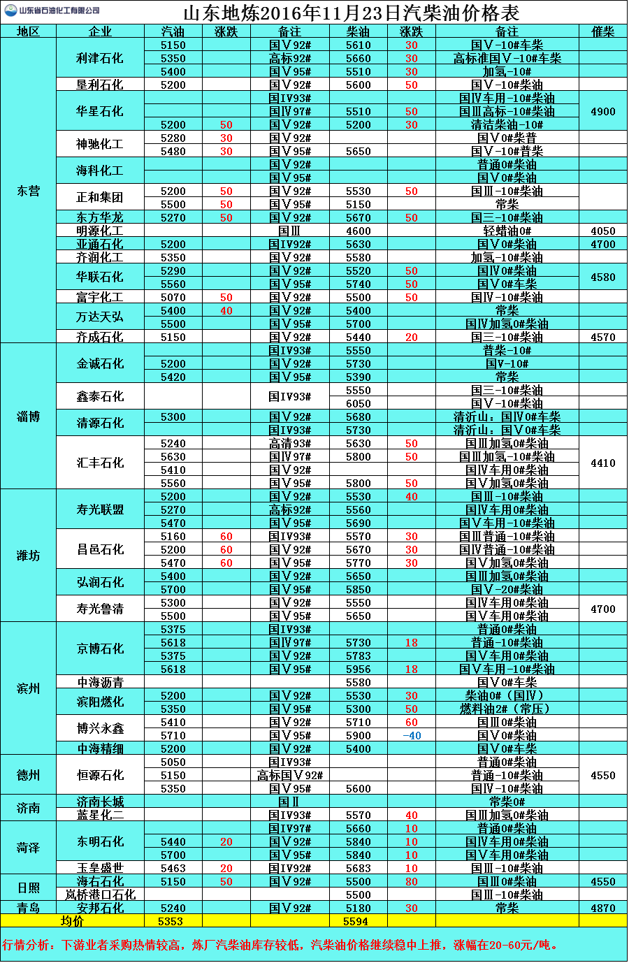 11月23日山東地煉汽柴油價格