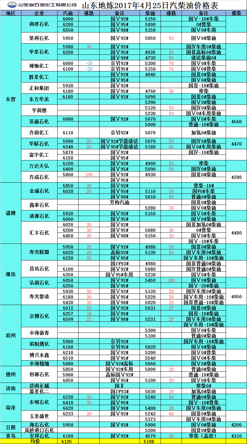2017年4月25日山東地?zé)捚裼蛢r(jià)格